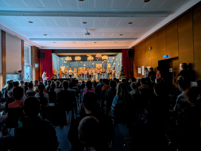 Zunächst bekamen die 1. und 3. Schuljahre das Programm präsentiert und in der zweiten Runde durften die 2. und 4. Schuljahre den winterlichen Klängen lauschen.
